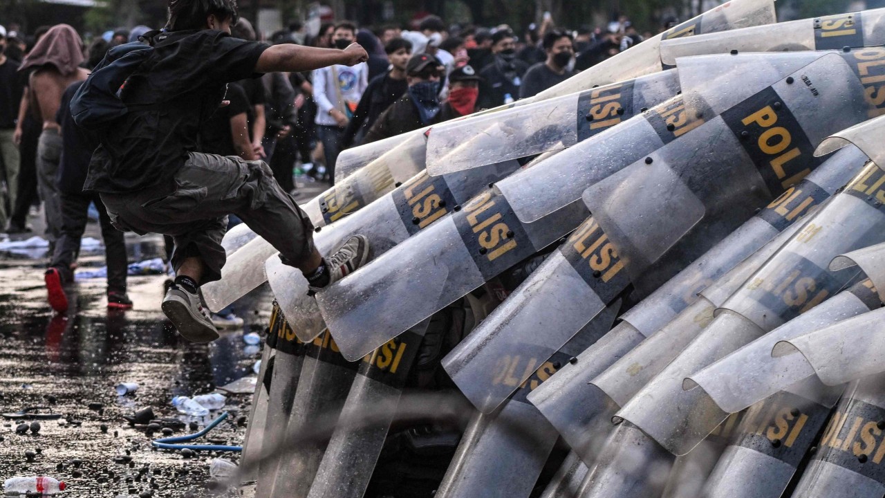 In Jakarta, police fired tear gas and water cannons as thousands of protesters attempted to storm the parliament building on Friday.