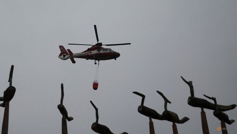 A firefighting helicopter carries water during an operation as a wildfire burns, in Yeongyang, South Korea, Mar 28, 2025. (Photo: REUTERS/Kim Hong-Ji)
