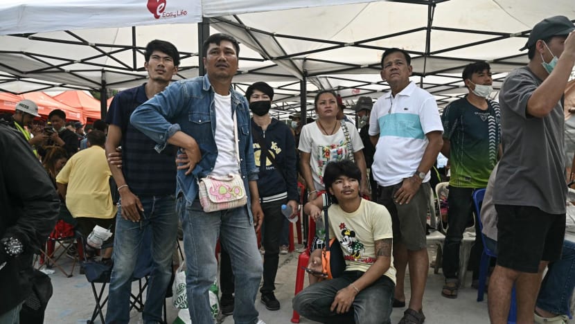 Friends and relatives wait for news about possible survivors in Bangkok. Many construction labourers in the Thai capital are from Myanmar. (Photo: AFP/Lillian Suwanrumpha)