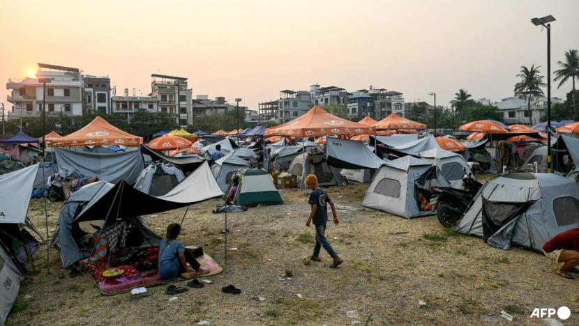 Residents take shelter in a makeshift tent camp in Mandalay on Apr 1, 2025, a few days after the deadly Myanmar earthquake. (Photo: AFP/Sai Aung Main)