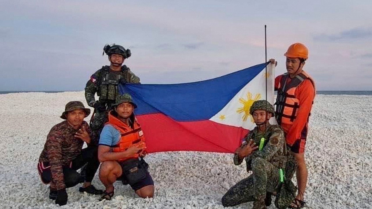 Two weeks after Chinese coastguard personnel posed with their national flag on Sandy Cay – asserting “indisputable sovereignty” over the reef, which it refers to as Tiexian Jiao – Philippine navy, coastguard and police units mounted a counter-mission on Sunday, unfurling their own flags on three cays that form part of the feature.