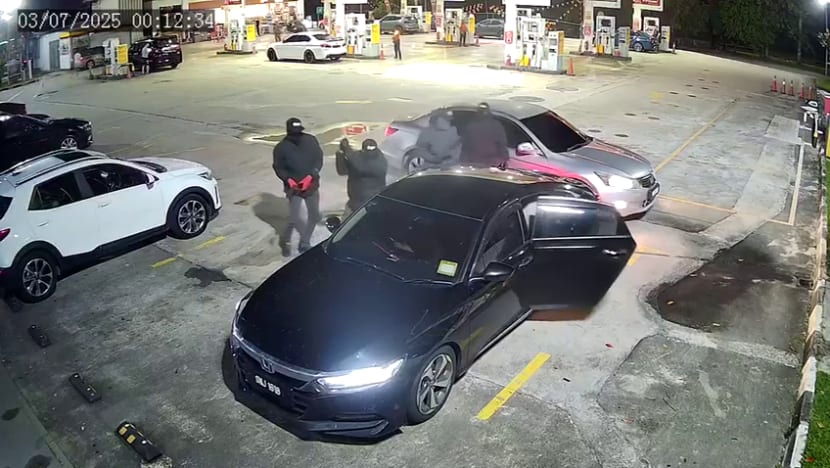 CCTV footage circulating on Facebook and WhatsApp showed a silver car driving up to a black Honda parked at a petrol station.
