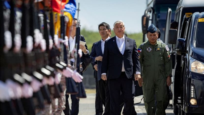 Japanese Defence Minister Gen Nakatani arrives at the Naval Station Ernesto Ogbinar, previously known as Wallace Air Station, in San Fernando City, La Union province, Philippines, on Feb 23, 2025. (Photo: REUTERS/Eloisa Lopez)
