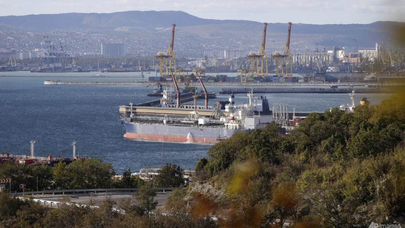An oil tanker is moored at the Sheskharis complex, part of Chernomortransneft JSC, a subsidiary of Transneft PJSC, in Novorossiysk, Russia, on Oct 11, 2022, one of the largest facilities for oil and petroleum products in southern Russia. (File photo: AP)