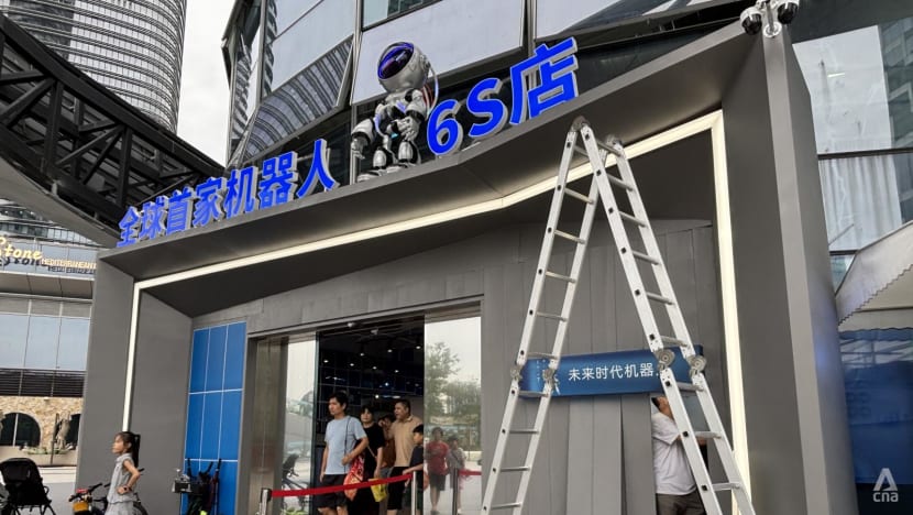 The Future Era robotics store in Shenzhen’s Longgang District, billed as the world’s first “6S” robot store, opened in late July 2025. (Photo: CNA/Melody Chan)