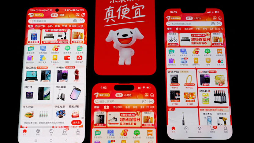 The logo of e-commerce app JD.com is displayed among mobile phones displaying the app, in this illustration picture taken on Oct 25, 2023. (File photo: Reuters/Florence Lo)