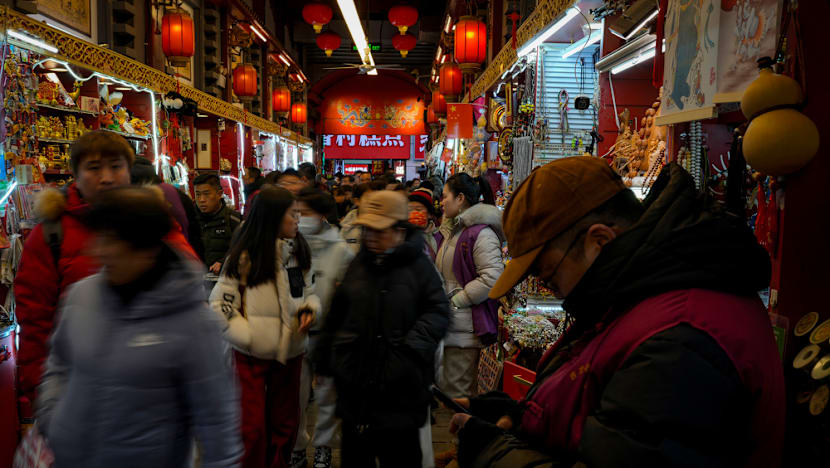 Shoppers visit stores selling a variety of souvenirs in Beijing on Feb 23, 2025. (AP Photo/Andy Wong)
