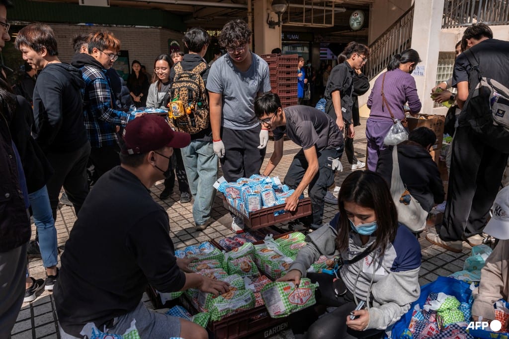 Volunteers arrange bread for residents near the scene of a major fire that swept through several apartment blocks at the Wang Fuk Court residential estate in Hong Kong’s Tai Po district on Nov 28, 2025. (Photo: AFP/Dale De La Rey)