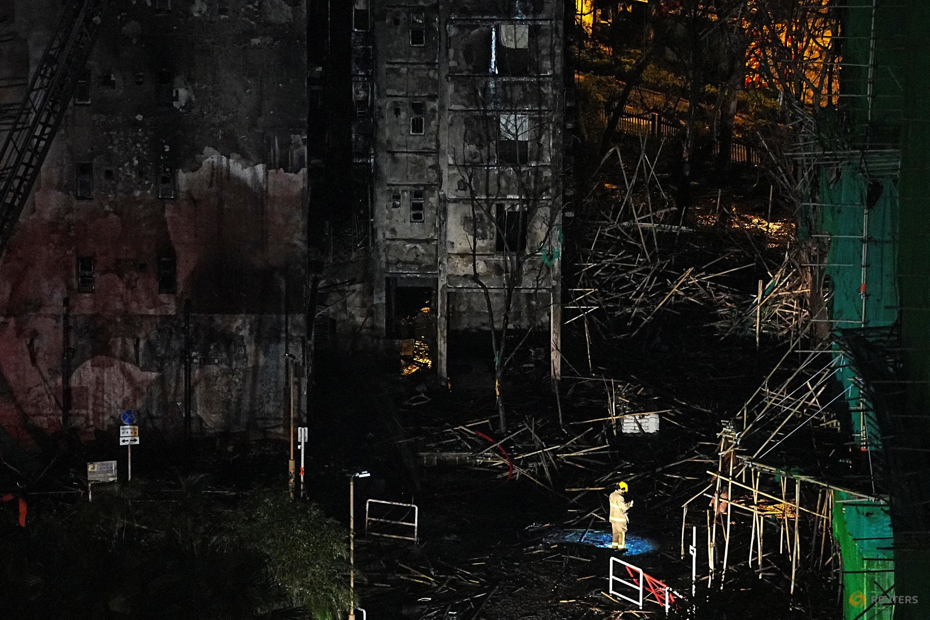 A firefighter stands at the site after a deadly fire at the Wang Fuk Court housing complex, in Hong Kong, China, Nov 28, 2025. (Photo: Reuters/Lam Yik)