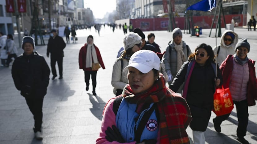 A group of tourists visits a shopping street in Beijing on Nov 28, 2025. Travel is expected to remain one of Asia-Pacific’s strongest engines of growth in 2026, according to the latest annual outlook from the Mastercard Economics Institute. (Photo: AFP/Wang Zhao)
