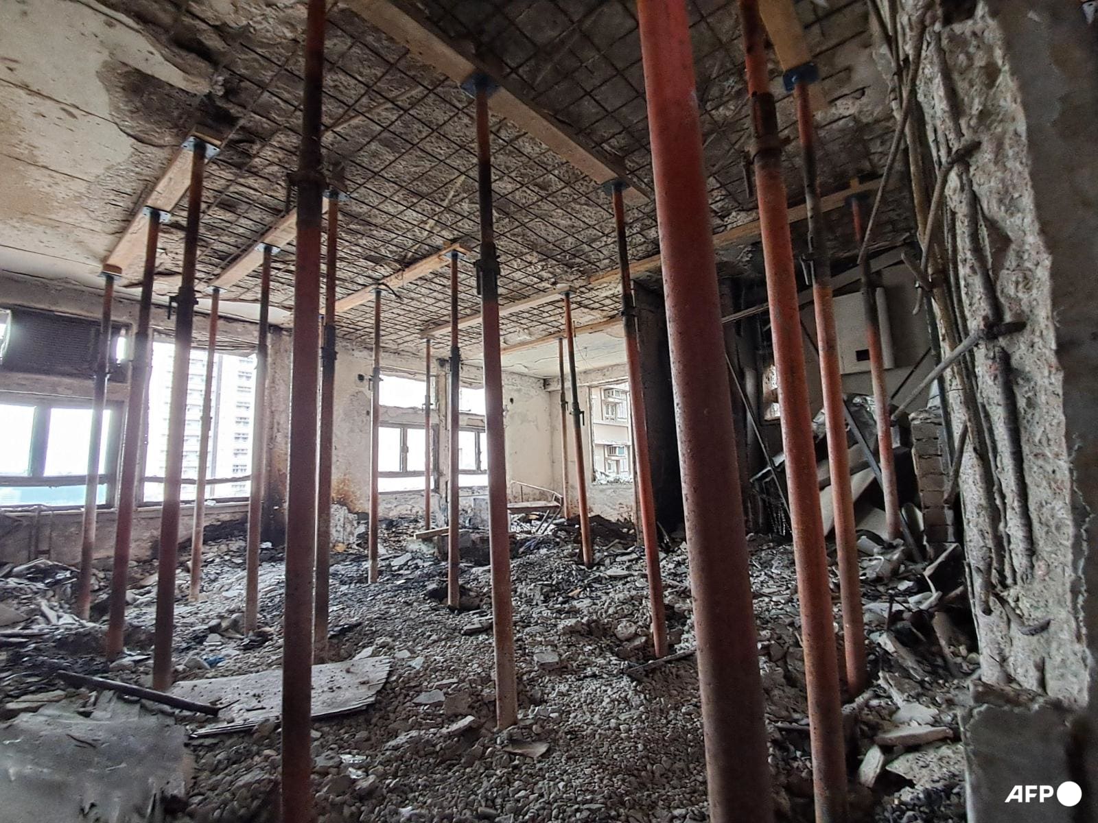 Damaged areas of the residential complex in Hong Kong’s Tai Po district have been cordoned off as “danger zones”, while reinforcement works have been carried out where the building structure was compromised.