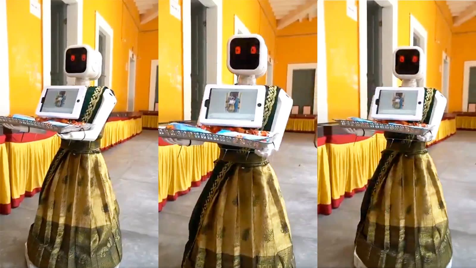 In Puducherry, a robot in a saree welcomed voters at a booth on polling day on April 9, according to local reports.