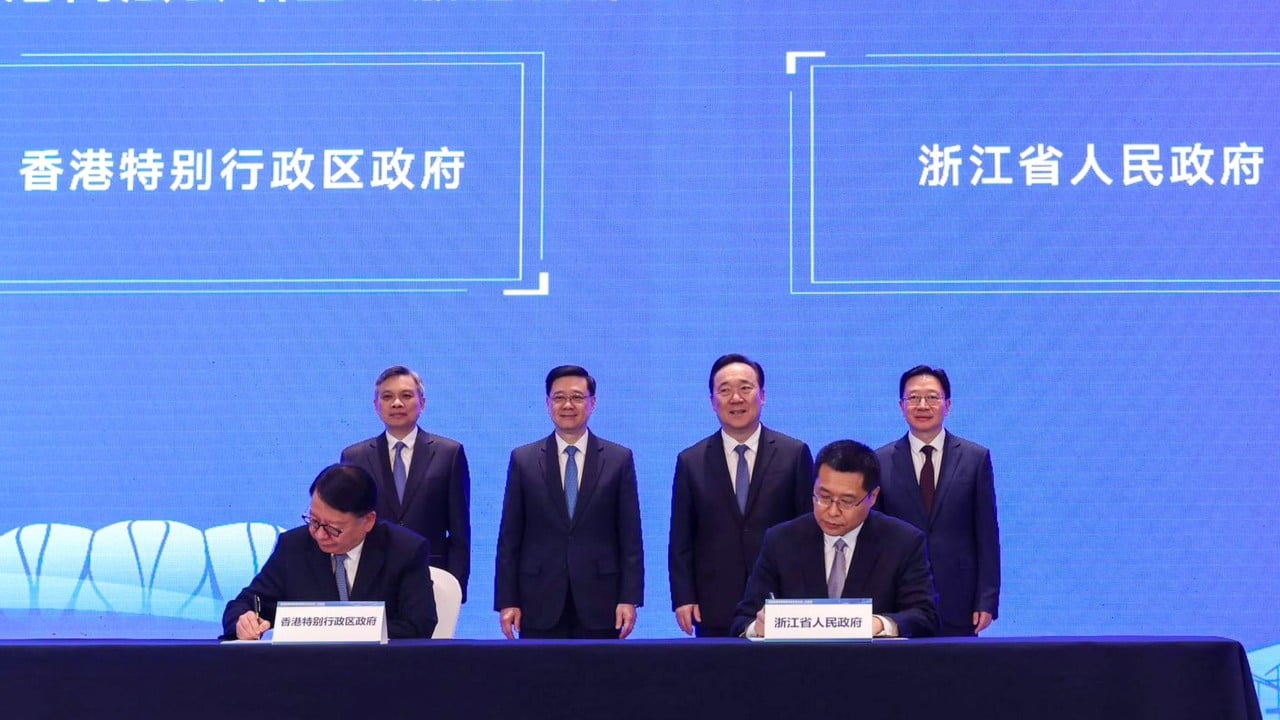 Hong Kong and Zhejiang province, one of mainland China’s tech strongholds, have set up a mechanism to strengthen collaboration in 13 key areas including aviation, smart cities and artificial intelligence (AI), Chief Executive John Lee Ka-chiu has said, while calling on entrepreneurs of Ningbo descent to invest in a border innovation hub in the city.