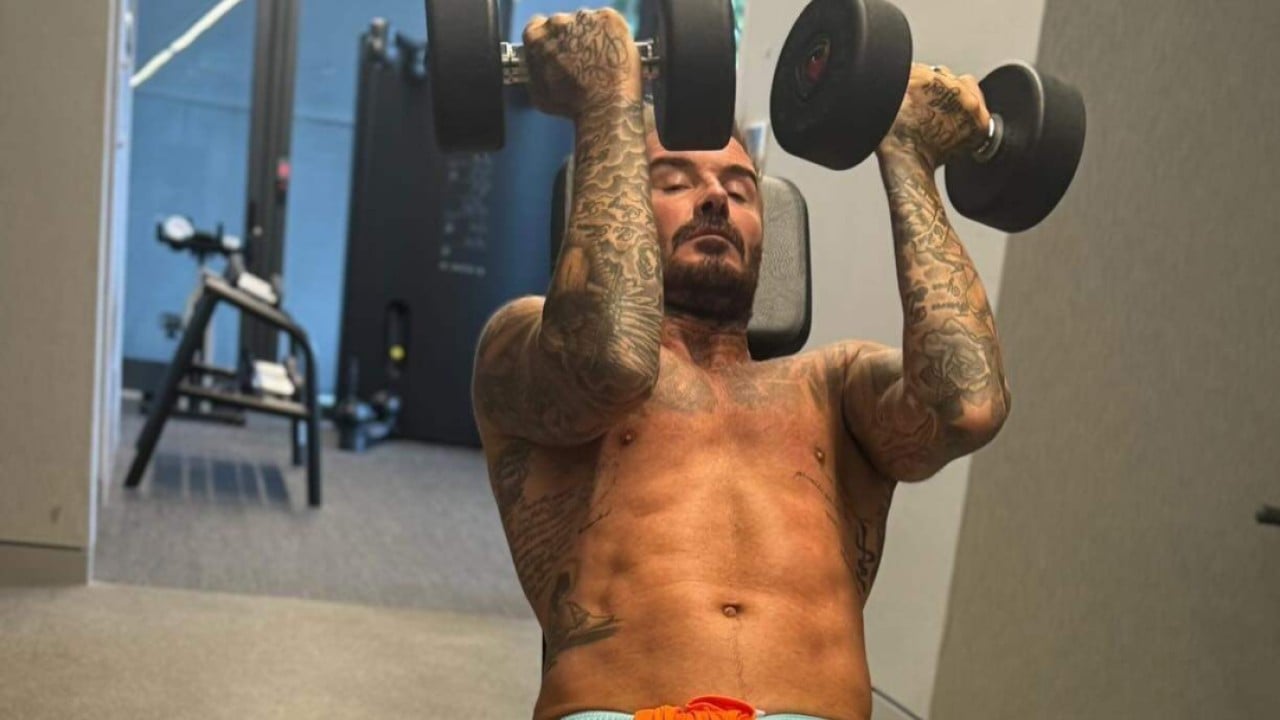 Flex it like Beckham. Ex-soccer star builds muscles and braces for big 5-0