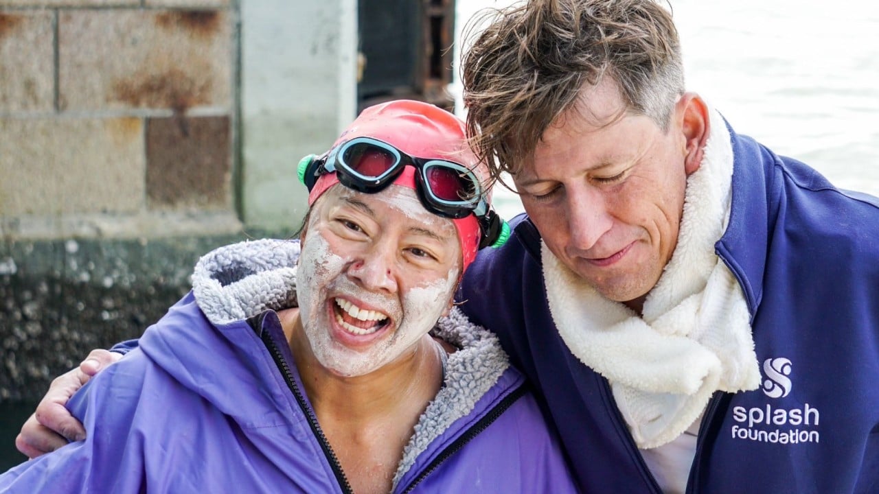 On November 20, the Hong Kong art dealer set off from the Disneyland Resort Pier to circumnavigate Lantau – Hong Kong’s largest island – in a tandem swim with friends Simon Holliday, 46, the founder of the Splash Foundation, and Brett Kruse.