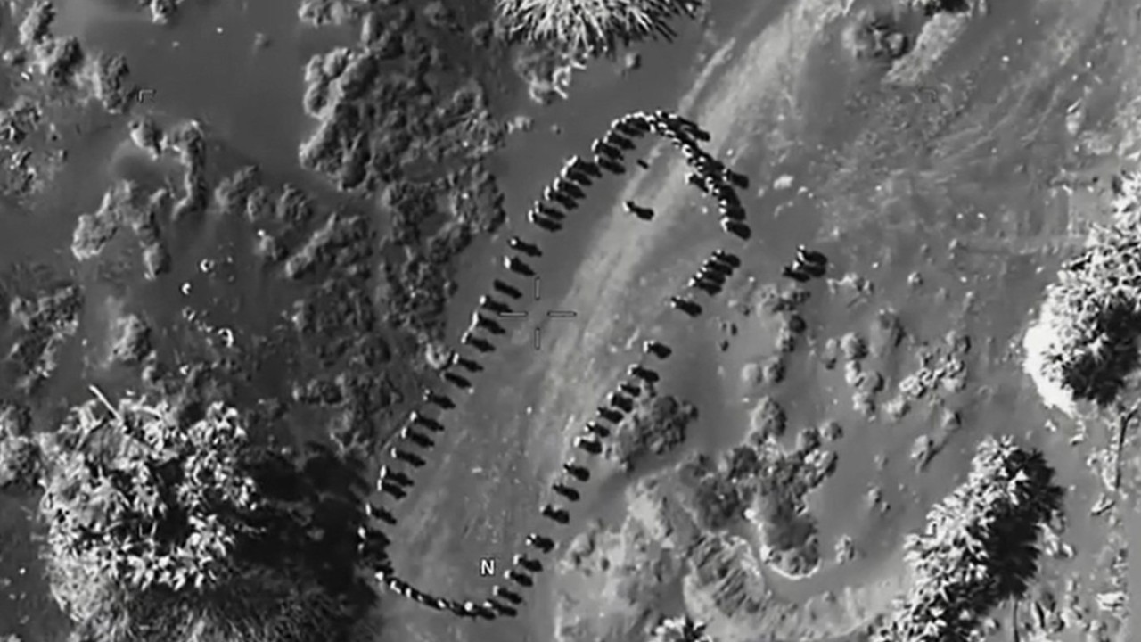Resembling images shot from military drones or other loitering aircraft, the black-and-white footage Trump posted to social media shows several dozen human figures from an almost vertical angle.