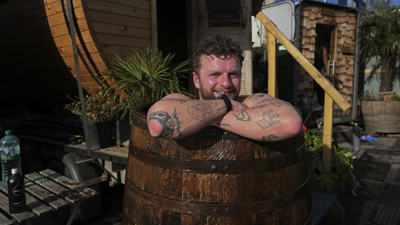 Visitors enjoy their sauna session at the Community Sauna Baths in Hackney, London. Photo: AP