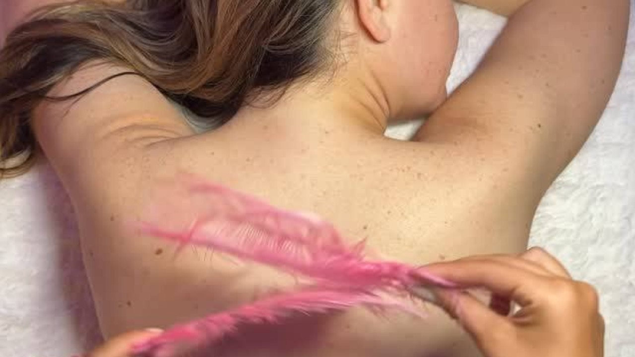I am lying on a heated massage bed, cocooned in a soft, weighted blanket, as Kayla Faraji caresses my cheeks with billowy, pink goose feathers. She slides them down the sides of my neck and around my bare shoulders, sending chills up my spine.