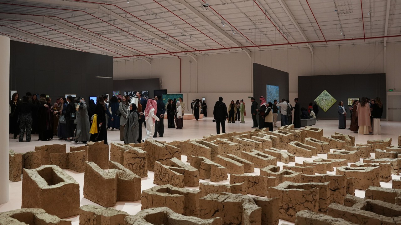 One example of the kingdom’s investment in art infrastructure is Diriyah’s JAX district – a former industrial area converted into a mini arts and design hub filled with artist studios, galleries, the Saudi Arabia Museum of Contemporary Art, and cafes and shops. It is also the venue of the Diriyah biennale, titled “In Interludes and Transitions”.