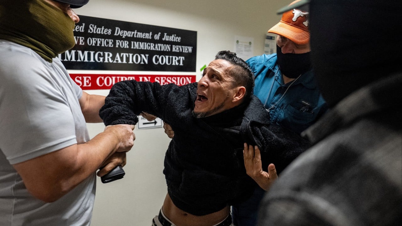 ICE agents detain a protester as other protesters try to stop them in East Side, Chicago. Photo: Chicago Sun-Times via AP