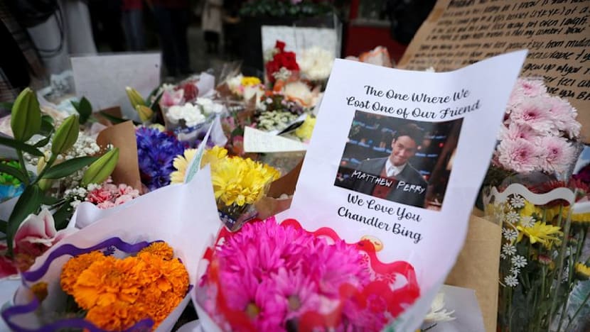 A makeshift memorial for actor Matthew Perry, the wisecracking co-star of the 1990s hit television sitcom Friends, who was found dead at his Los Angeles home in 2023, is pictured on Bedford Street in Manhattan in New York City, US on Oct 30, 2023. (File photo: Reuters/Mike Segar)